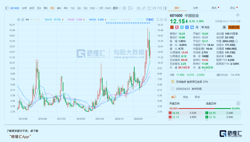 A股此前的电解铝一哥中国铝业,从2020年底部以来股价累计涨幅高达3.4倍(前复权)。云铝股份的期间累计涨幅更是接近8倍。